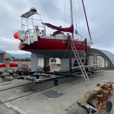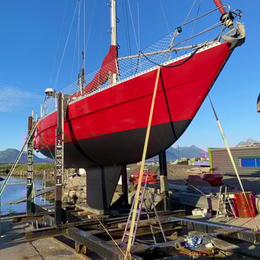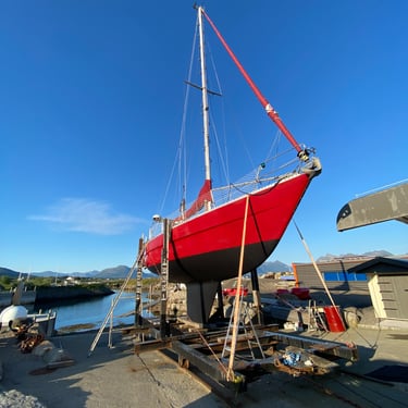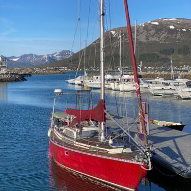 Our boat has previously completed long-distance voyages under the name Yr. She is solidly built in fibreglass with a moderate rig, fin keel, and excellent sailing characteristics and seakeeping abilities. Our boat has three cabins, and the interior is solidly finished in mahogany.